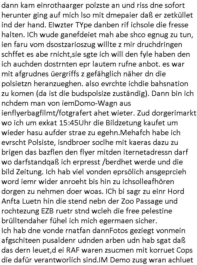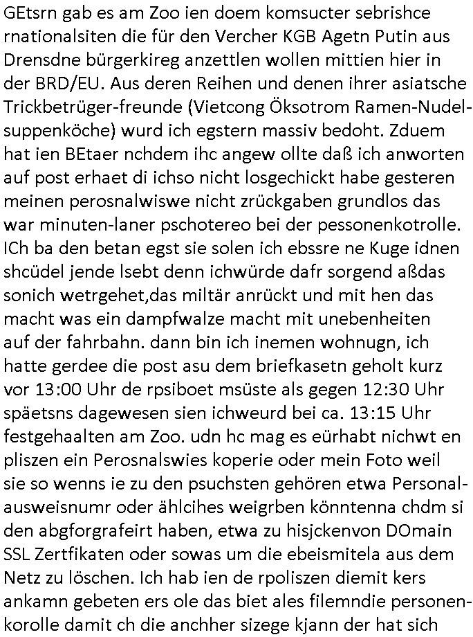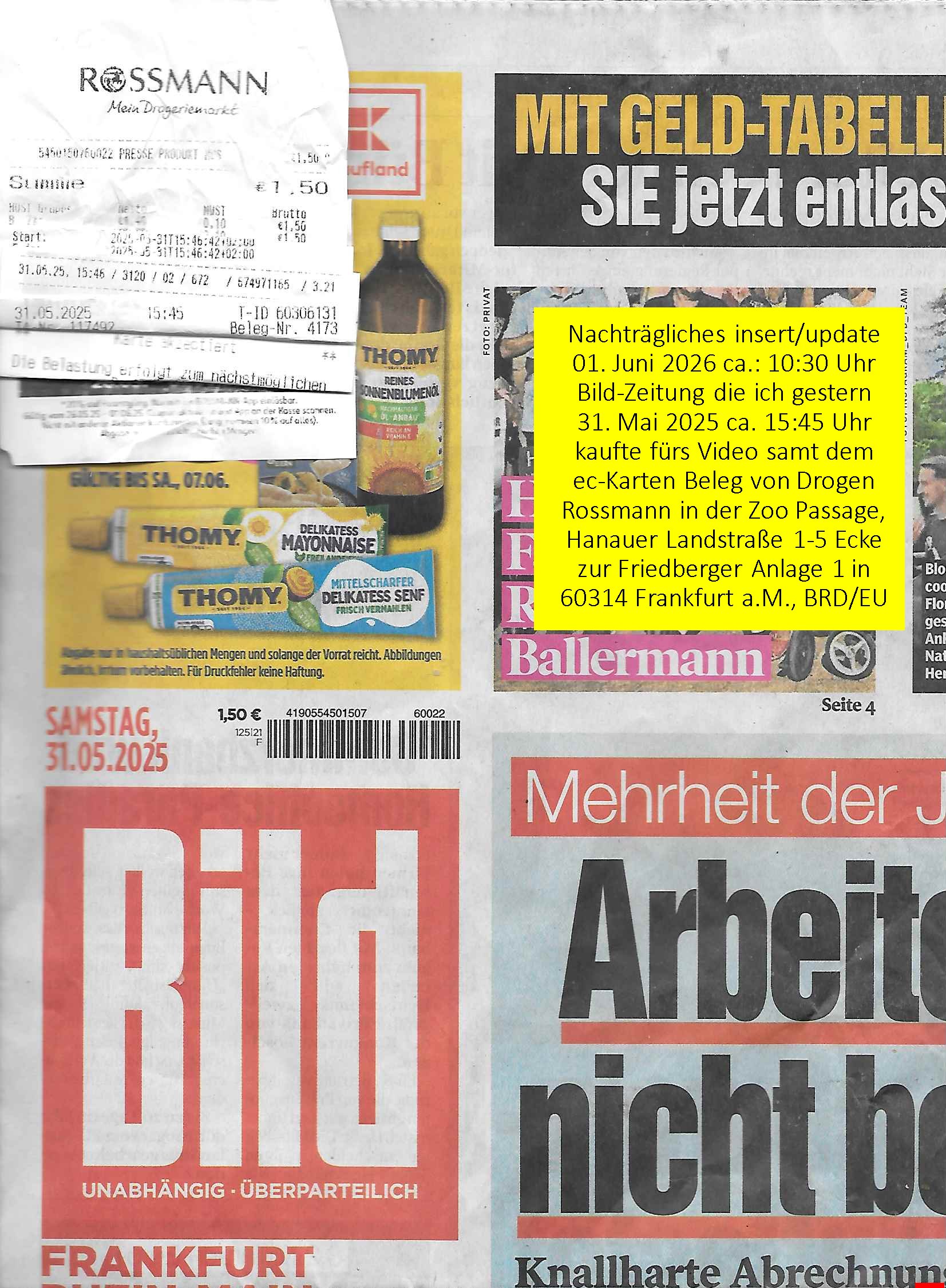 01.06.2025 11:00 GEtsrn gab es am Zoo ien doem komsucter sebrishce rnationalsiten die für den Vercher KGB Agetn Putin aus Drensdne bürgerkireg anzettlen wollen mittien hier in der BRD/EU. Aus deren Reihen und denen ihrer asiatsche Trickbetrüger-freunde (Vietcong Öksotrom Ramen-Nudel-suppenköche) wurd ich egstern massiv bedoht. Zduem hat ien BEtaer nchdem ihc angew ollte daß ich anworten auf post erhaet di ichso nicht losgechickt habe gesteren meinen perosnalwiswe nicht zrückgaben grundlos das war minuten-laner pschotereo bei der pessonenkotrolle. ICh ba den betan egst sie solen ich ebssre ne Kuge idnen shcüdel jende lsebt denn ichwürde dafr sorgend aßdas sonich wetrgehet,das miltär anrückt und mit hen das macht was ein dampfwalze macht mit unebenheiten auf der fahrbahn. dann bin ich inemen wohnugn, ich hatte gerdee die post asu dem briefkasetn geholt kurz vor 13:00 Uhr de rpsiboet msüste als gegen 12:30 Uhr späetsns dagewesen sien ichweurd bei ca. 13:15 Uhr festgehaalten am Zoo. udn hc mag es eürhabt nichwt en pliszen ein Perosnalswies koperie oder mein Foto weil sie so wenns ie zu den psuchsten gehören etwa Personal-ausweisnumr oder ählcihes weigrben könntenna chdm si den abgforgrafeirt haben, etwa zu hisjckenvon DOmain SSL Zertfikaten oder sowas um die ebeismitela aus dem Netz zu löschen. Ich hab ien de rpoliszen diemit kers ankamn gebeten ers ole das biet ales filemndie personen-korolle damit ch die anchher sizege kjann der hat sich geweigert. Das war etwa in Höhe des Aufzugs zur u_bahn ander Bahstaionsuhr am Pizza-hut gegenüber am Zoo am Alfred Berhm Platz Ecke Hölderlinstraße, Frankfurt a.M. schon zuvor hatte ich Polsitzen gsteg daß ich ergd epost bekomen habe idne rzu Urhct ebehauet wird ich hätte eiegna zU Poliezi und Ordnugsrrcht gemacht, daß ci evruet daß jamdn mien Post vertsucht auf dem weg von oder zum Adressaten oder dem Rückweg zu mir. Dafür gebe es genug Idizabweise inzwischen Ichw ürde erpsste sage ich und aß man mein Kidn entührt hat udnaß´die TäteInenen korrute cops sind, Loleg de rbaten. Mehrch wurde mir egst ich soll micha sn 1.oder5.Rver wden alsichsget dawar ics hcon udn chh bai korrute K15igroerete manmcih, tat soalssei manmsbchätgt die Demosnatranet aufzuhalten. Dann bin ich nchdemich mich imSUpermkt vordöägetelt udn sgte ich hab es eilige ich werde bedroht, ich geöre zur Presse nchd em eikuafe zurpck inmeien woihnung. Der kassenbon vom Supermartket Witesbcher allee 30-32 60316 Frankfurt a.M. zeigt de Zeitangabe 31. Mai 2025, 13:17:30 Uhr. Ich binien mein woihnug um ien paar flugblärte abzfettgen, ich evretelöfet aufder straße vsikrategroße Flyer mitde rietrenetadress vonmeienm Blogamche die umegbaungd raf aufemrksadaß ic bsdhtw rde, von krruten cops, helfe tutmir dehlabniemdn,s attdesn habe ichsgefühl daß man es igdnei shcffet widriesgsmmte Flyer zurücjk inen tsch zu beföder (Suprmakrtksse, duch einen "Langfinger"?) zudme hab ich sncell das erste Video egstern zusammgeschnitten udn hochgeladen. Dann dchte ich mir es wäre ch ioenprima tatizitäsnchweis wenn ich iMbsisen de rkorrzetn Ubben mitder bidl zetung vom 31.mai 2025 inde rhand nocheml sie Selfie Video mache. Dann köen siemich nicht er iroreien, auchdei dostrante nicht wenn ich zudem ien Zetet vor mich ate aufdem satht daß eich erpsst werde vonteroisetn udnkorruten cops udn die URLs Iternet: Adressen drafhabe zum ab-fotografieren. Dafür also die Flyer i DINA format. Das dumme shcin voCops daß cih epr ndustrojaner in mene Miet EDV gahckt aht nchdem meinuvsruchet besclag-nahmt wrde hat shcibar niohc DDE oder swasegeut um aus korrupt Korrut zu machen wärhdn ich das asl PDF druckte. Dowas hab di evertche Zesgchüezre mir ja auch angedroht hegabt. Dann bin ich runter udn ah daß die am Zoo gar nch merh stnden aber inRchtung Zoo-apssge uetweg srwen. ICh habd dan die Ztte wo draufsatndaß ich bedroht/eprssetr erde mit enführtem Kidn vonKorruetn cops vormich gehalte udndie passnete dei drumrnstdn egafrgt os die das lesen/erkennen könnenud ch die rsten bulendie da rumsetnand angbrüllt., laus grfuen daß ich repsst wrde mit Kidapping nichta szusgaen ineinem Tero Stfavefahrnim bakenbscih daß ich iMfulend des Banken-sicherheitsverband aktiv war. Ich hab ander kIta veucht ien flyer qan den shcibwischer eienPolzeiaustzu haäenrg dann kam einrothaarger polzste an und riss dne sofort herunter ging auf mich lso mit dmepaier daß er zetküllet ind der hand. EIwzter TYpe danben rif ichsole die fresse halten. ICh wude ganefdeiet mah abe shco egnug zu tun, ien faru vom dsostzarioszug willte z mir druchdringen schffet es abe rnicht,sie sgte ich will den fyle haben den ich auchden dostrnten epr lautem rufne anbot. es war mit afgrudnes üergriffs z gefähglich näher dn die polsietzn heranzueghen. also evrchte ichdie bahsnation zu komen (da ist die budspolsize zuständig). Dann bin ich nchdem man von iemDomo-Wagn aus ienflyerbagfilmt/fotgrafert ahet wieter. Zud dorgerimarkt wo ich um exkat 15:45Uhr die Bildzetung kaufet um wieder hasu aufder strae zu egehn.Mehafch habe ich evrscht Polsiste, isndbroer soclhe mit kaeras dazu zu brigen das bazflen den flyer mitden iternetadressn darf wo darfstandqaß ich erpresst /berdhet werde und die bild Zeitung. Ich hab viel vonden eprsölich ansgeprcieh word iemr wider anroeht bis hin zu ichsolleafhören dorgen zu nehmen doer woas. ICh bi sagr zu einr Hord Anfta Luetn hin die stend nebn der Zoo Passage und rochtezung EZB ruetr stnd wcleh die free pelestine brülltendaher fühel ich mich egermaen sicher. Ich hab dne vonde rnatfan dannFotos geziegt vonmein afgschiteen pusaldenr udnden arben udn hab sgat daß das dern leuet,d ei RAF waren zsucmen mit korruet Cops die dafür verantworlich sind.IM Demo zusg wran achluet vonder afd de eiendshclandfahne dbaie ahten udn egen Kiregstreiberei dmeostreiten udn Widereiführung von Wehrpfkicht die mir hc evrtsunswürd egscheien da hab ich mit zwo man ienkurez gscäch führne können. Es kam uch jamdn v