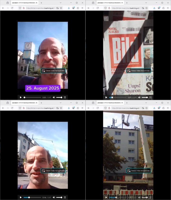 25.08.2025 11:00 Nun aber wie immer Monatgs zum Prim-time 20:15 Uhr TV Porgramm vom gestrigen Sonntag, 24. August 2025. Es lief der #Tatort "Ein Hochamt für Toni" den ich meinte schonmal gesehen zu haben. Tatsächlich ergab eben eine wikipedia rechrche daß der shcon einmal gelaufen ist und zwar am 04. Juni 2023 als Erstausstrahlung, tatscählich hab ich dazu am 05. Juni 202 shconl was in meinem blog gschrieben she ich gerde. Daher hate ich mir den #Tatort gar nicht ganz angeschaut sondern noch ien klein wenig an meinem mailtrap/honeypot/tarpit gebasetlt und nur kurz in die Mediathek reingeschaut egstren abend bis ich mekret daß ich die OFleg shon einmal gesehen hatte. https://tvinfo.de/fernsehprogramm/2181227090-tatort http://blog.sch-einesystem.de/ARTICLE/2023060505000/ ( http://banktunnel.eu/sch-einesystem/20230605.htm ) https://de.wikipedia.org/wiki/Tatort:_Hochamt_f%C3%BCr_Toni [0] "202508251100-0-1.jpg" |