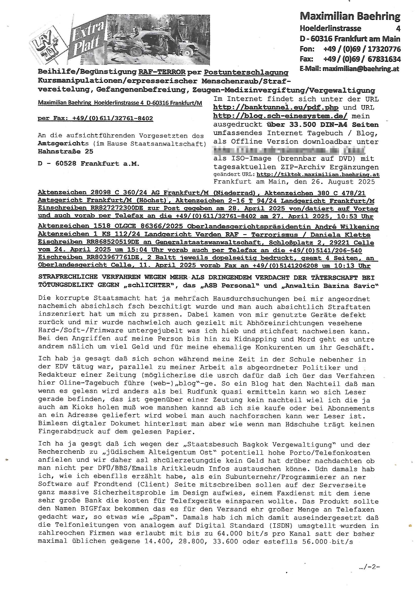 Im Internet findet sich unter der URL http://banktunnel.eu/pdf.php und URL http://blog.sch-einesystem.de/ mein ausgedruckt über 33.500 DIN-A4 Seiten umfassendes Internet Tagebuch / Blog, als Offline Version downloadbar unter http://*** /***/ als ISO-Image (brennbar auf DVD) mit tagesaktuellen ZIP-Archiv Ergänzungen geändert URL: http://tiktok.maximilian.baehring.at