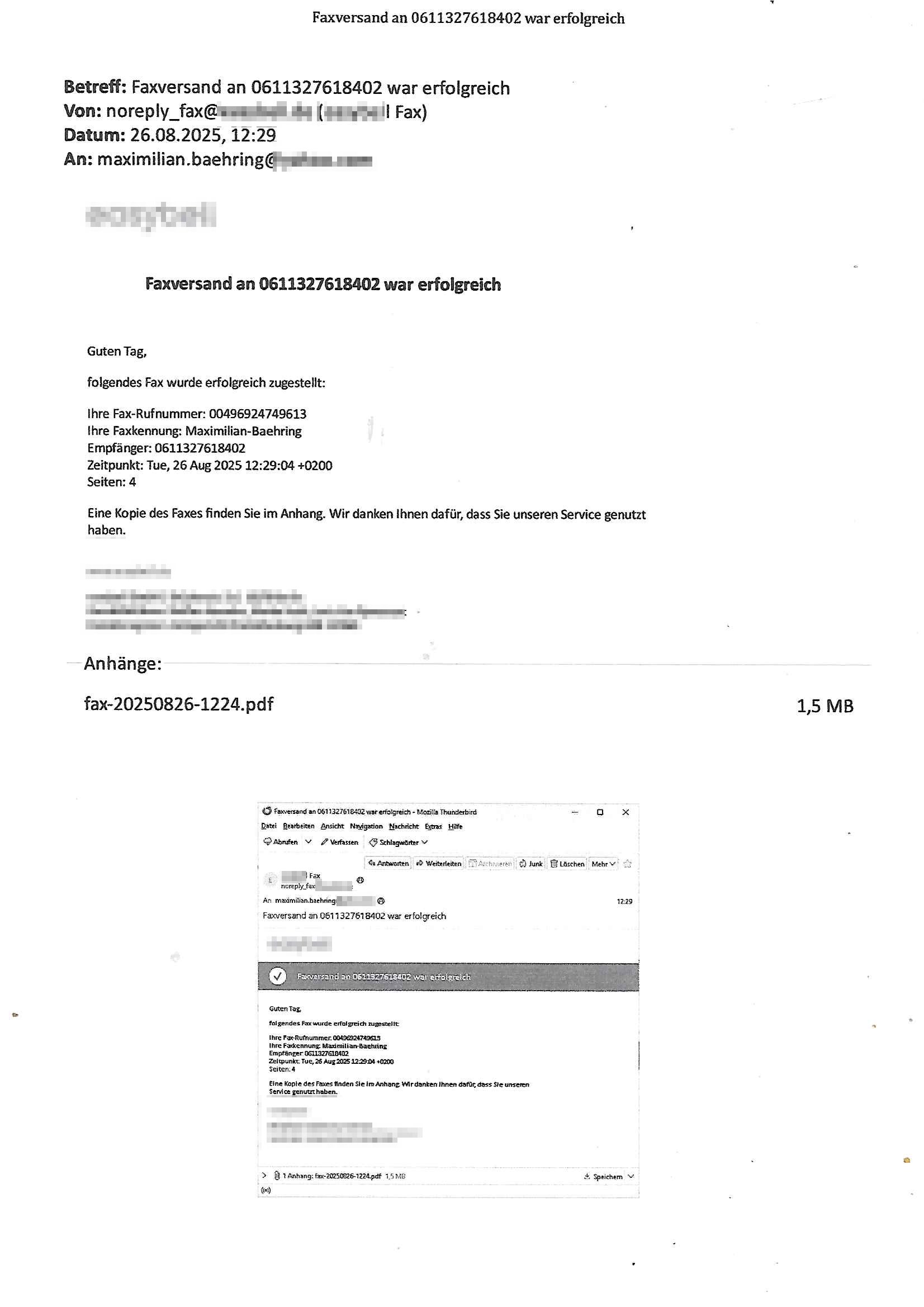 Eine Kopie des Faxes finden Sie im Anhang. Wir danken Ihnen dafür, dass Sie unseren Service genutzt haben.