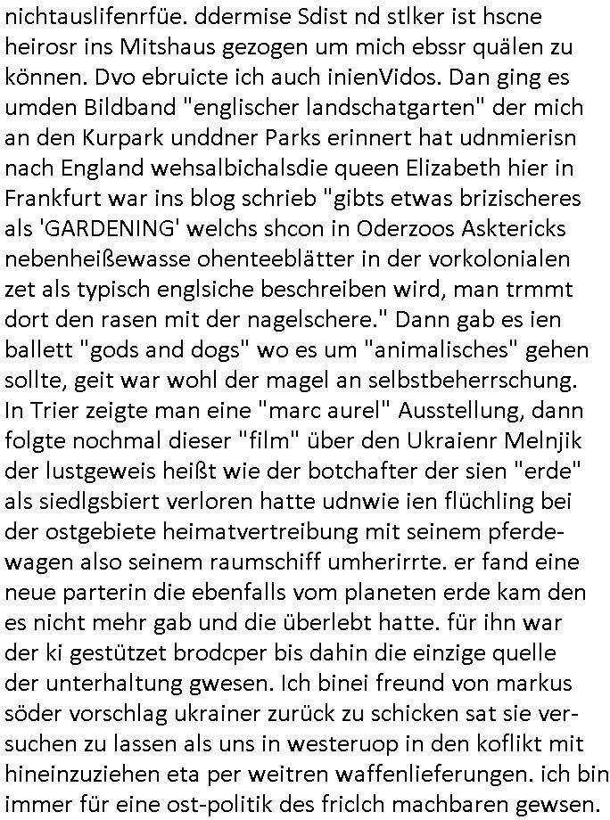 pharmaka) betäuben um ihre brutal umfeld ertragn zu können an der sie als zu tarfüheldne wesen zerbrechen. wer eie puppenhaus hatte oder playmobil action-figuren wi diese srräebrsodaten der mag auch insgeheim theater aus der flimmerkiste. vilecht sind couetrspiel inden man vatre stert deshla so erfolgreich wil es ien art mitach Fernsehen ist wo man wie in der demokartei per wahlen oder auffreinäretnalskosument inds iegrfen kann was man auf dem anchschtebildshcimr sieht, anders als beim anfeuern bei fußballspielen auf dem spielfeld von der tribüne der vor dem fernsehr "TOOOR!" brüllend. ic hab mal wa sgelsen wonch dei anzen tv-zuschauer bei länder-spielen am liebsten nationlmannschaft-trainer wären. quasi SPORT-KOMMENTATOREN ! einalwie deiser typ der damsl bei der "heute-show" angefange hat fershen zu amchen oder der exmann von "schimmerin marlen lufen" #MERKAUMUSSWEG ! jedenflls ist es so daß Karim/Elija der ja von den Eltern her schon TRERNNUGSOPFER ist nun sbet zum Gestand einer Partnerschfts-trennung wird. Ich hab mal gelesen daß "istabileeletrehasu" vererbt sich weiter, letliche terngsopfekider habn es schwere selbst eine stabile bezihung aufzubauen als Erwachsene wei sie keiVorbider im LEterhaus haben, sodenr auf sgenwir das fshen, Soap Operas wieeat #berliNueKölln02407 oder #berliTagunchat zurückgreifen müssen umzu shen was "normal" an "gesscftlchen evrhätnissen" "da draußen". Die "Single-Mom DreiWetter-Taft Influcerei Powerfrau"