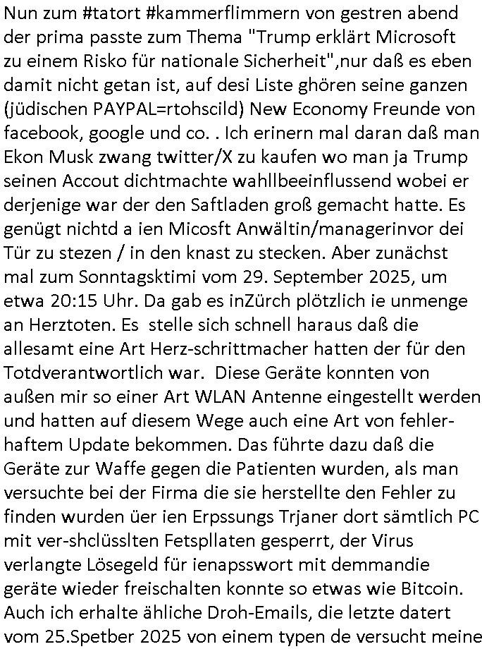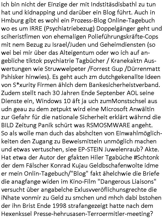 29.09.2025 15:30 Ich bin nicht der Einzige der mit Indstitäsdisbathl zu tun hat und kidnapping und darüber ein Blog führt. Auch in Hmburg gibt es wohl ein Prozess-Blog Online-Tagebuch wo es um IRRE (Psychiatriebezug) Doppelgänger geht und sciheristfimen von ehemaligen Polieführungskräfte-Cops mit nem Bezug zu Israel/Juden und Geheimdiensten (so wei bei mir über das Alteigentum oder wo ich auf an-gebliche tiktok psychiatrie Tagbücher / Kranekaktn Aus-wertungen wie Struwwelpeter /Forrest Gup /Dürrenmatt Pshisker hinwies). Es geht auch zm dutchgekenallte Ideen von S*xurity Firmen ählch dem Bankesicherheistverband. Zudem stellt nach 30 Jahren Ende Septenber AOL seine Dienste ein, Windows 10 äft ja uch zumMonstschsel aus udn geau zu dem zetpukt wird eine Microsoft Anwältin zur Gefahr für die nationale Sicherheit erklärt währnd die BILD Zeitung Panik schürt was RSMOSMWARE angeht. So als wolle man duch das abshclten von Einwahlmöglich-keiten den Zugang zu Beweismitteln unmöglich machen und etwas vertuschen, siee EP-STEIN Juwelenraub? Akte. Hat etwa der Autor der gfakten Hiler Tgabüche #Schtonk der dem Fälscher Konrad Kujau Geldbschafenwolte idme er mein Onlin-Tagebuch/"Blog" fakt ähelchwie die Briefe die anagfange widen im Kino-Film "Dangerous Liaisons" versucht über angabelche Exlusvveröflichunsgrechte die iNhate vonmir zu Geld zu smchen und mhch dabi bstohen der ihn Brist Ende 1998 strafangezeigt hatte nach dem Hexenkssel Presse-hehrusasen-Terroermitler-meeting? Ich erinnere mich noch gut an den Typen der damsl beim Kita Zwamgsehe Schulschiff Forrest Gum Präsident Staats-besuch im Dschunglcamp des Bergwerks "Tropenkoller" - artig durchdrehte in einem "Simpson jerusalem Syndrom" artigen Wahn udnann ählich wie in #SpyGame respektive #Murot (Anti) Nazi-Kur Klinik-Paradies ausgflogen wurde. #berlinNueKölln02407 Soap-Star/ARD-#Tatort Kommissar Darsteller Wannabee "Papa Joe eChili BBQ" schlUTZ - SCHWEIGegELd ließ doch auf faketook/instatwiX jede menge inszenierte Straf-tatan veröffenlichen mit Promi Forensiker @markbenecke um sich herauszureden Bundespräsdialamt/Bundesmarine genieal wie die baksicheristzvrand und Metllegslcft Erprssung sei nur ne harmlose Übung nachwuchs Schülerzeitungspraktikum gewesen wie die korruetn Cops die alles was gaz rela war als Übung tarnten. Wos um "Sazttsbch Vegelting" sexuelle Belästigung ging. Die wollten doch asiatisch Nutten von N.C.I.S. Hafenkante die zur amfia gehören asl "Forrest Gum" Thai Massagen markboschfaterin per "K_R ROYAL" ins Land schleusen die meinen Vater erpressen sollten (Bergbau-Abfall-deponie "Endlager-Problem" Gewässer-verchmutzung-Erpressung). In dem Bild Zeitunsg Bericht vom porzes stdn etas vom Spormodertaoren (darum gings bei mir und der "olympia Reiterclique" "EZB Skaterpark Bart Simposn" meinSkiport Patentaante ja auch) daß der Eindruck Mandanten hätten Redvebote/Maulkörbe. https://www.bild.de/regional/hamburg/wie-in-mission-impossible-stiefmutter-double-sollte-block-kinder-ins-auto-locken-689ee637f3b330071984264b Mischen RAF-Stalinisten Terror / Reichsbürger Alteigentum Prozess Impossible: Beweismittel löschen sich Prinz Hairy-Pfui-Buh-hexenkessel Presse-Akademie Porttier von Geisterhand [0] "202509291530-0-1.jpg" [1] "202509291530-0-2.jpg" [2] "202509291530-0-3.jpg" |