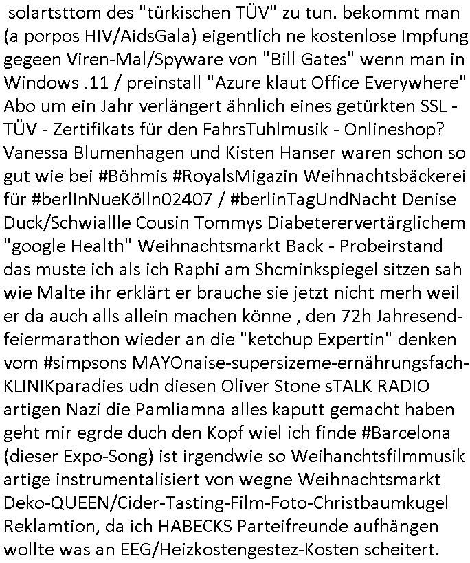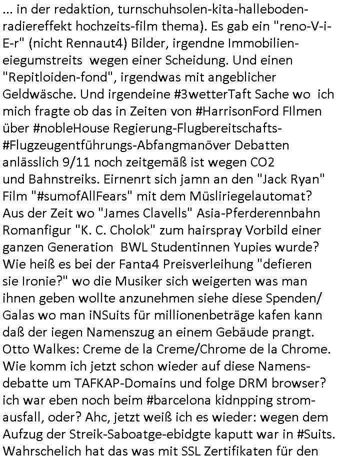 13.11.2025 06:16 ... in der redaktion, turnschuhsolen-kita-halleboden-radiereffekt hochzeits-film thema). Es gab ein "reno-V-i-E-r" (nicht Rennaut4) Bilder, irgendne Immobilien-eiegumstreits wegen einer Scheidung. Und einen "Repitloiden-fond", irgendwas mit angeblicher Geldwäsche. Und irgendeine #3wetterTaft Sache wo ich mich fragte ob das in Zeiten von #HarrisonFord FIlmen über #nobleHouse Regierung-Flugbereitschafts-#Flugzeugentführungs-Abfangmanöver Debatten anlässlich 9/11 noch zeitgemäß ist wegen CO2 und Bahnstreiks. Eirnenrt sich jamn an den "Jack Ryan" Film "#sumofAllFears" mit dem Müsliriegelautomat? Aus der Zeit wo "James Clavells" Asia-Pferderennbahn Romanfigur "K. C. Cholok" zum hairspray Vorbild einer ganzen Generation BWL Studentinnen Yupies wurde? Wie heiß es bei der Fanta4 Preisverleihung "defieren sie Ironie?" wo die Musiker sich weigerten was man ihnen geben wollte anzunehmen siehe diese Spenden/ Galas wo man iNSuits für millionenbeträge kafen kann daß der iegen Namenszug an einem Gebäude prangt. Otto Walkes: Creme de la Creme/Chrome de la Chrome. Wie komm ich jetzt schon wieder auf diese Namens-debatte um TAFKAP-Domains und folge DRM browser? ich war eben noch beim #barcelona kidnpping strom-ausfall, oder? Ahc, jetzt weiß ich es wieder: wegen dem Aufzug der Streik-Saboatge-ebidgte kaputt war in #Suits. Wahrschelich hat das was mit SSL Zertifikaten für den solartsttom des "türkischen TÜV" zu tun. bekommt man (a porpos HIV/AidsGala) eigentlich ne kostenlose Impfung gegeen Viren-Mal/Spyware von "Bill Gates" wenn man in Windows .11 / preinstall "Azure klaut Office Everywhere" Abo um ein Jahr verlängert ähnlich eines getürkten SSL - TÜV - Zertifikats für den FahrsTuhlmusik - Onlineshop? Vanessa Blumenhagen und Kisten Hanser waren schon so gut wie bei #Böhmis #RoyalsMigazin Weihnachtsbäckerei für #berlInNueKölln02407 / #berlinTagUndNacht Denise Duck/Schwiallle Cousin Tommys Diabeterervertärglichem "google Health" Weihnachtsmarkt Back - Probeirstand das muste ich als ich Raphi am Shcminkspiegel sitzen sah wie Malte ihr erklärt er brauche sie jetzt nicht merh weil er da auch alls allein machen könne , den 72h Jahresend-feiermarathon wieder an die "ketchup Expertin" denken vom #simpsons MAYOnaise-supersizeme-ernährungsfach- KLINIKparadies udn diesen Oliver Stone sTALK RADIO artigen Nazi die Pamliamna alles kaputt gemacht haben geht mir egrde duch den Kopf wiel ich finde #Barcelona (dieser Expo-Song) ist irgendwie so Weihanchtsfilmmusik artige instrumentalisiert von wegne Weihnachtsmarkt Deko-QUEEN/Cider-Tasting-Film-Foto-Christbaumkugel Reklamtion, da ich HABECKS Parteifreunde aufhängen wollte was an EEG/Heizkostengestez-Kosten scheitert. https://tvinfo.de/fernsehprogramm/2228174561-suits https://tvinfo.de/fernsehprogramm/2228174565-suits https://tvinfo.de/fernsehprogramm/2228174569-suits https://tvinfo.de/fernsehprogramm/2228174576-suits https://www.bild.de/news/ausland/nach-dem-mega-blackout-spanien-spricht-von-cyber-terror-6810ca1b4ec0bd4a96841c89 https://www.bild.de/news/ausland/oviedo-beim-mega-blackout-schlugen-die-fahnder-im-horror-haus-zu-68132d5b12ee6b68d1b7d70d [0] "202511130616-0-1.jpg" [1] "202511130616-0-2.jpg" |