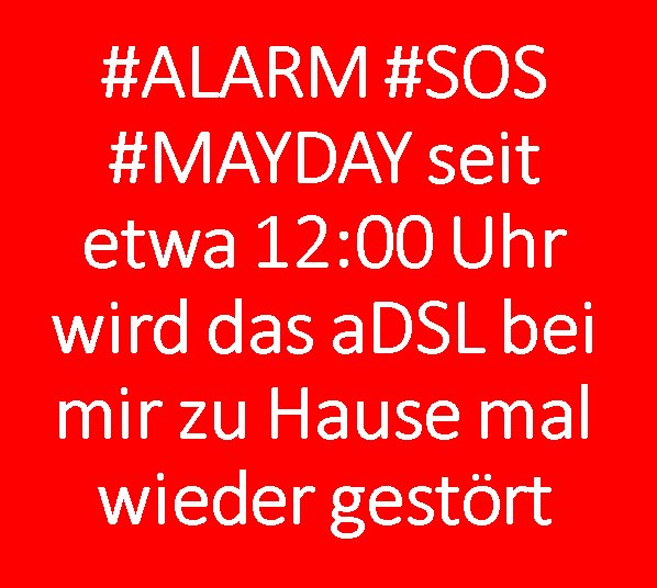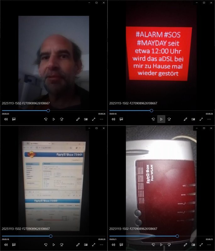 13.11.2025 12:00 #ALARM #SOS #MAYDAY seitetwa 12:00 Uhrwird das aDSL bei mir zu Hause mal wieder gestört [0] "202511131200-0-1.jpg" [1] "202511131200-0-2.jpg" |