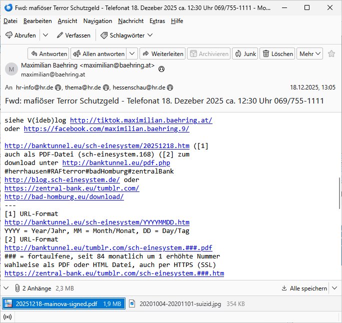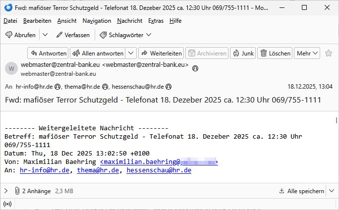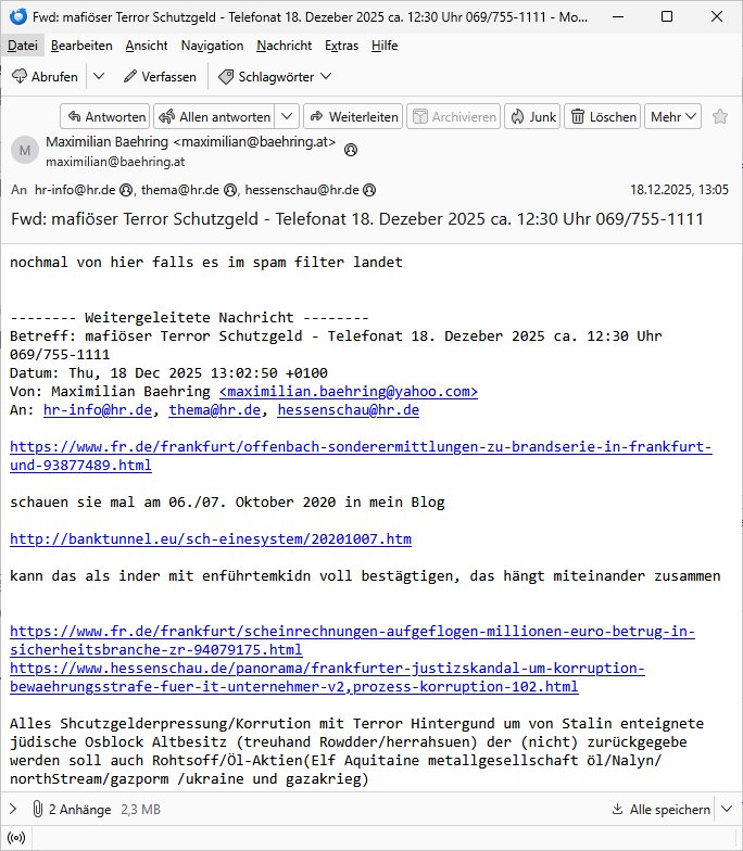 Betreff: Fwd: mafiöser Terror Schutzgeld - Telefonat 18. Dezeber 2025 ca. 12:30 Uhr 069/755-1111