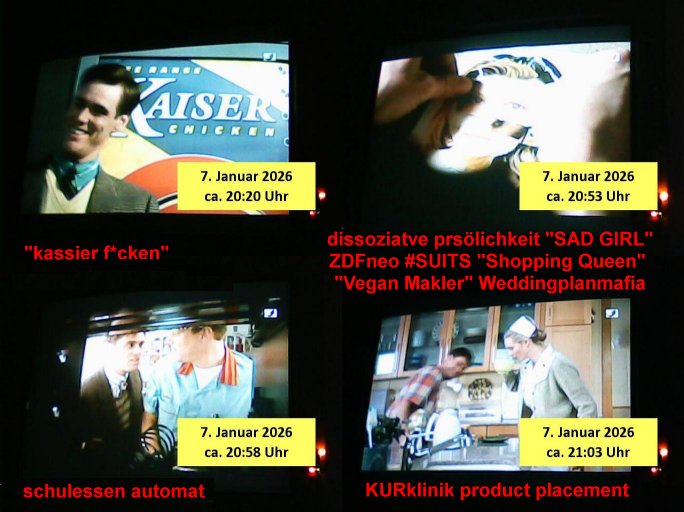 Nun zum 18:00 Uhr TV - Vorabendprogramm von gestern, Mittwoch dem 07. Januar 2025: Bei den #simpsons kam die Folge wo Grandpa Ape pfeift sow wie Vincenz Schimo mein Stiefgroßvater mütterlicherseits. Er geht mit Maggie zu Konzerten und Maggie wird ein Kinderstar der aber schnell wieder die Gunst des Publikums verliert. Marge? Wird gebeten für Mafaiboss Fat Tony die innebdeko eines Bordell in einem alten Postamt zu übernehmen. In Folge zwo wird Maggie Opfer einer Hypnose von so einem rot Teriator artegn mita laseraugen schielenden Robo-Gerät. Sie wird dadurch von einem Dämon befallen den dann ein Exorzisten - Prietser austreiben muss. Es gibt hinter einer Katzenklappe ein grausames Paralleluniversum im Animationsfilm-Stil mit anderen Simpsons Homer hat da einen (oder den trickfilm-realen miteingerechnet drei) Doppelgänger mit Knopfaugen, genau wie Marge. Lisa wird hingerichtet/ Guillotiniert. Der reale Homer ernährt sich in einr hungersnrt selbst indem er sich kannibalisiert, (von der Substanz? seiner beliehenen Eigenheime? lebt) selbst nachdem Hund Knecht Ruperecht ihn angegriffen und verletzte hat. Gab es nicht erst gestern eine Folge in der es darum ging daß nach Navy-Technik-Unfall Polzei- und justizversagen gemeine Hunde die Kontrolle über die Stadt üerbehmen und jagd auf Menschen machen? DIemsal gab es einen angelchen "Grill-Unfall" bei dem Homer Gliedmaßen einbüsste die der Hund fraß. Erinerts