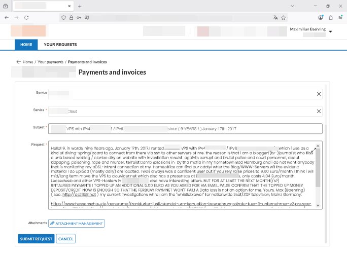 Hello! 9, in words, nine Years ago, January 17th, 2017,I rented *** VPS with IPv4 *** / IPv6 *** which i use as a kind of diving-spring/board to connect from there via ssh to other servers of me. the reason is that i am a blogger/(tv-)journalist who filss a unix based weblog / olonbe diry on website with investiation resulst  againts corrupt and brutal police and court personnel, about kidpaping, paisoning, rape and murder, terroist bomb exlosions in  by tha mafia in my hometown Bad Homburg and i do not want anybody that is monitoring my aDSL-Intrent connection at my  homeoffice can find our odctyl wher the Blog/WWW-Servers wit the evidenc material I do upload (mostly daily) are located. I was always was a confident user but if you rely raise prices to 9,60 Euro/month i think i will mid/long term move the VPS to *** which also has a presensce at *** ***, only costs 4,** Euro/month. *** and other VPS-Hosters in *** also have interesting offers. BUT FOR AT LEAST THE NEXT MONTH(/s?)
