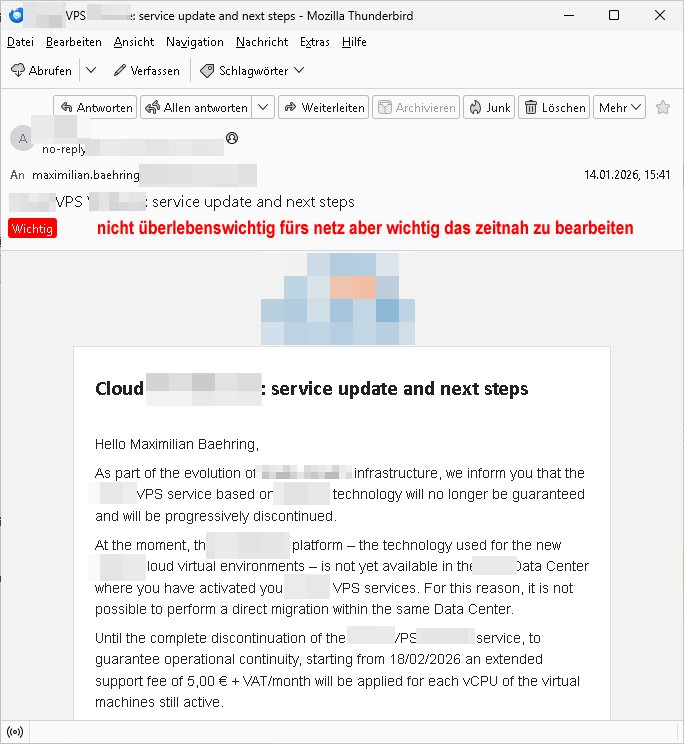 As part of the evolution of *** Cloud’s infrastructure, we inform you that the *** VPS service based on **** technology will no longer be guaranteed and will be progressively discontinued.