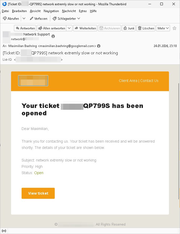 Betreff: [Ticket ID: ***QP799S] network extremly slow or not working