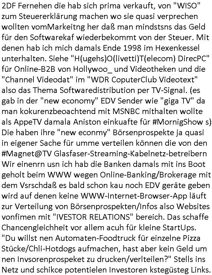 17.02.2026 06:00 A propos "Mind the gap/Vorsicht an der bahnsteigkante/ Dr Zoch Kütt" Videos, gestern war der Smartphone Akku schon wieder halb leergelutscht wegen dem Video-Dreh. Zum glück kommt der Strom für den Streaming Content aus der Steckdose wo es anders als Inklusivvolumen das mani Suepremkt ber afaldearten nchkafen muß nix kost. Ernenrtmich an den 11. Februar 2026 wo der Treu Crime Podcast von der Sat1 #Frühstücksfrensehen MoRd-eratorinfast meinen "Akku gekillt" hat. Ausgaben für Strom die auf Cybercrime zurückgehen an dem die Öko-strommafia mit hren drückkolonen gut verdient. An Hacker-Attacken letztendlich. Es gab gestren auch kurz vor 18:00 Uhr auf #Brisant in ardDasErste war es glaub ich nen Prpgramm-hinwsie auf nen neuen "A. ERKAU" Stream im GEZ-PayTV-Mediatheken-Abo "MORD oder WATT" nach dem Kolleginnenvorbild "M wie Mar_ne" . Ab Mittwoch (18.) wohl vorab zum Download und am Freitag (22). dann auf irgedneinem der GEZ TV - Sender. Weiß nicht ob man #Musk*'s #SpaceX/#Starlink braucht um den IP - Geoblocking Stream per Sat zu emfangen. Gibt es da ne Flatrate im Scnhupper-Abo-Bundle mit #TruthSocial so man das neue Trump Smartphone kauft? So von wegen die App läuft nur in der Samsung Galaxis Filterblase aber nicht auf SymbianOS/WindowsCE/Palm. (Das terosche porblem daß man unmanipulierte apple AktienKurs Appsnuar auf DRM fägen iPhones sehn kann). Es gab ja früher mal Spar-Apps wie dei ZASTA App vom 2DF Fernehen die hab sich prima verkauft, von "WISO" zum Steuererklärung machen wo sie quasi verprechen wollten vomMarkeitng her daß man mindstsns das Geld für den Softwarekaf wiederbekommt von der Steuer. Mit denen hab ich mich damals Ende 1998 im Hexenkessel unterhalten. Siehe "H(ugehs)O(livetti)T(elecom) DirecPC" für Online-B2B von Hollywoo_ und Videotheken und die "Channel Videodat" im "WDR CoputerClub Videotext" also das Thema Softwaredistribution per TV-Signal. (es gab in der "new economy" EDV Sender wie "giga TV" da man kokurenzbeoachtend mit MSNBC mithalten wollte als AppeTV damala Aniston einkuafte für #MornigShow s) Die haben ihre "new econmy" Börsenprospekte ja quasi in eigener Sache für umme verteilen können die von den #Magnet@TV Glasfaser-Streaming-Kabelnetz-betreibern Wir einenrn usn ich hab die Banken damals mit ins Boot geholt beim WWW wegen Online-Banking/Brokerage mit dem Vsrschdaß es bald schon kau noch EDV geräte geben wird auf denen keine WWW-Internet-Browser-App läuft zur Verteilung von Börsenprospekten/Infos also Websites vonfimen mit "IVESTOR RELATIONS" bereich. Das schaffe Chancengleichheit vor allem acuh für kleine StartUps. "Du willst nen Automaten-Foodtruck für einzelne Pizza Stücke/Chli-Hotdogs aufmachen, hast aber kein Geld um nen Invsorenprospeket zu drucken/verlteilen?" Stells ins Netz und schikce potentielen Investoren kstegüsteg Links. https://m-wie-marlene.podigee.io/67-neue-episode https://www.youtube.com/watch?v=ec48D1BB1rc https://www.brisant.de/stars/mord-oder-watt-oliver-mommsen-wilde-hilde-,mord-oder-watt-104.html https://simpsons.fandom.com/wiki/Podcast_News https://tvinfo.de/fernsehprogramm/2288997211-brisant https://www.buhl.de/steuer/kaufen/ Sponsoren Link: WISO Steuer statt Zasta https://www.google.com/search?client=firefox-b-e&channel=entpr&q=zasta+app [0] "202602170600-0-1.jpg" [1] "202602170600-0-2.jpg" [2] "202602170600-0-3.jpg" [3] "202602170600-0-4.jpg" |