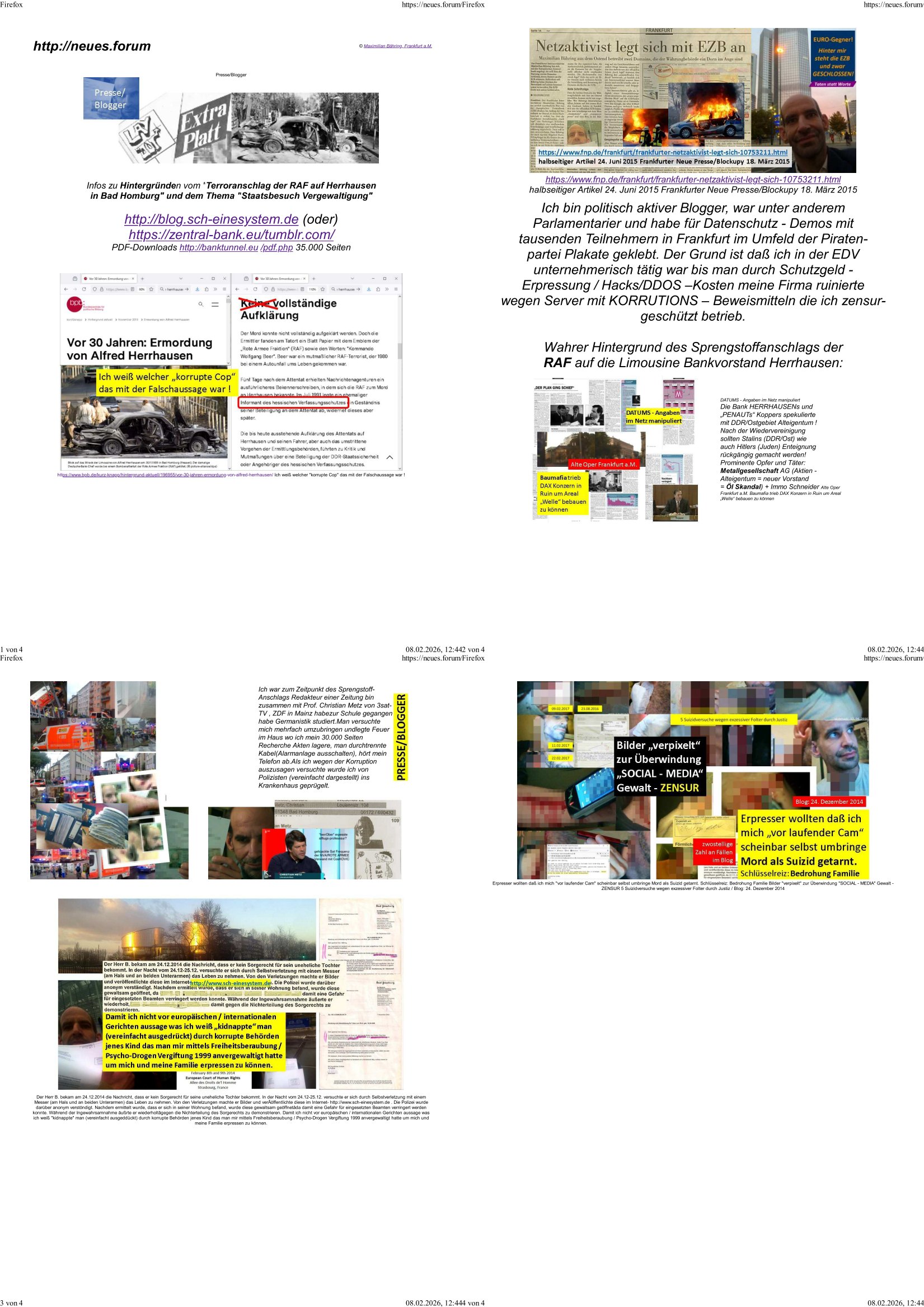 05.03.2026 06:47 MASSENAUSTRITT RAF Terror, Gruppenvergewaltigung Kidnapping, Erpressung und Mord durch Claus Assmann, Florian Bruckmaier und andre CVJM [„Kalifornien“ Freizeit] Verbrecher „Der Mensch denkt doch Gott … lenkt“! @Küster Firmenwagen HH-TL-252 „Unfall“ am „Wasser-weibchen“ Erlöserkirche 2003: „Seinen Nächsten Verrät man nicht“ Urkundenfälschung: Gemeinde Pleite (Simpsons Revernd Lovejoy) Kirche lieh sich Geld bei Spielbank fälschte Geburtsurkunden sowie Austrittsurkunde, erwiesen per DNA-Gutachten http://take-ca.re [0] "202603050647-0-1.jpg" [1] "202603050647-0-2.jpg" [2] "202603050647-0-3.jpg" |